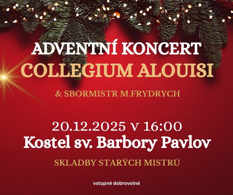 Přijďte si zpříjemnit adventní čas s pěveckým sborem Collegium Alouisi pod vedením Miroslava Frydrycha.
