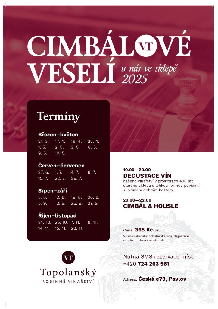 Vinařství Topolanský srdečně zve na večerní posezení s degustací vín a cimbálovou muzikou.
