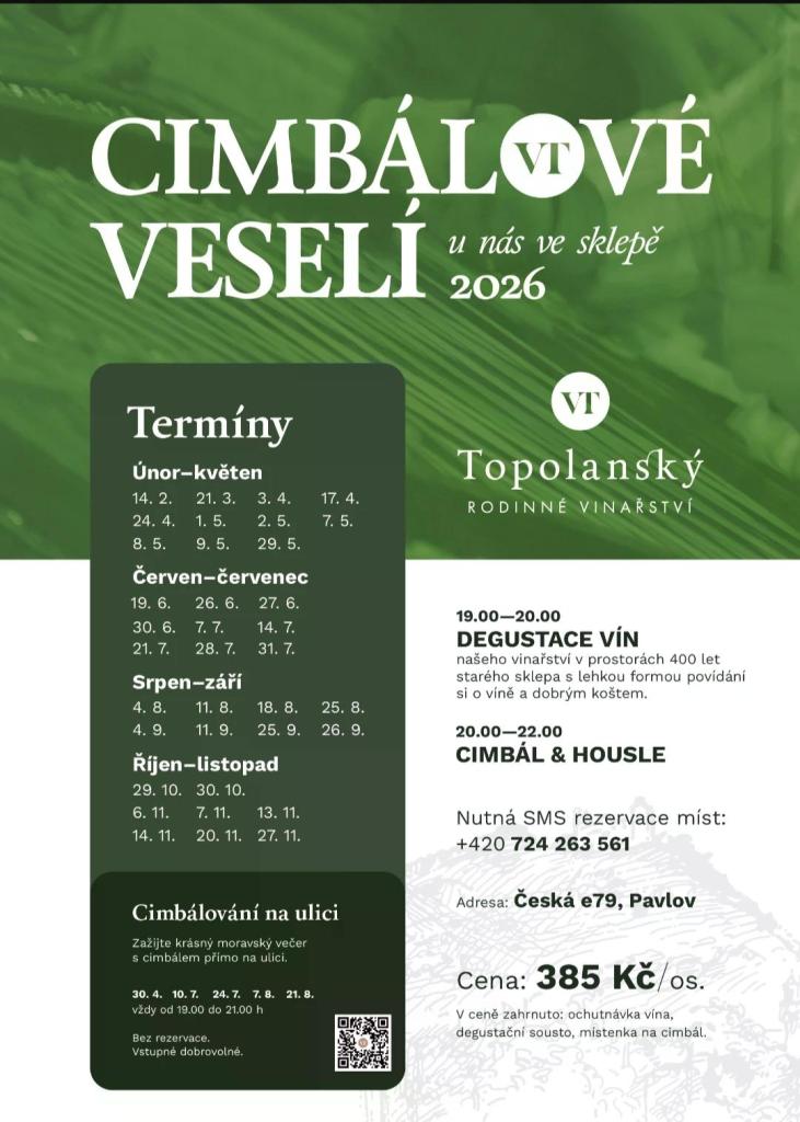 Vinařství Topolanský srdečně zve na večerní posezení s degustací vín a cimbálovou muzikou.