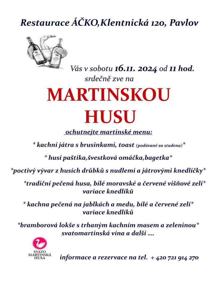 Restaurace ÁČKO srdečně zve na MARTINSKOU HUSU.